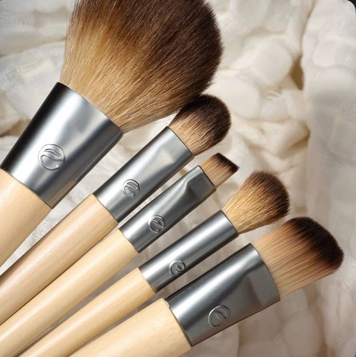 The EcoTools Start the Day Beautifully Makeup Brush Set includes: (1) Angled Foundation Brush, (1) Blush Brush, (1) Crease Definer Brush, (1) Angled Contour Brush, (1) Full Blush Brush, (1) Storage Tray