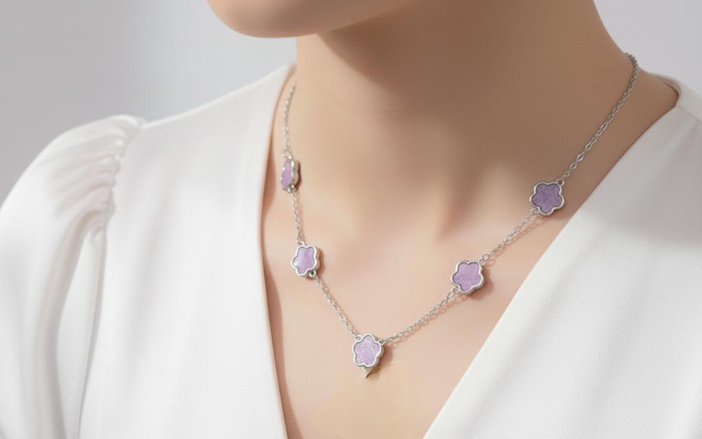 Material: Van Cleef & Arpels necklace in 18k white gold plated titanium stainless steel