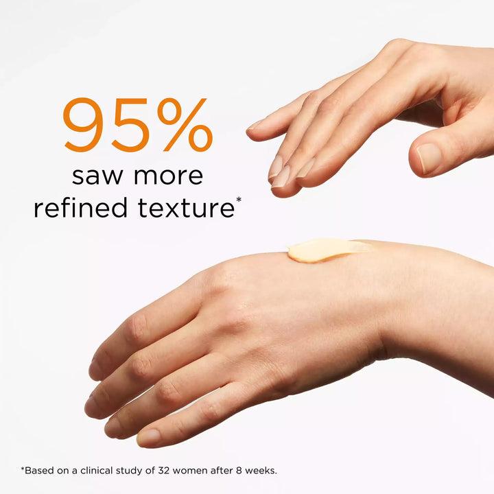سيروم للوجه سريع الامتصاص، يُشد البشرة ويُحسّن مرونتها، ويُوحّد لونها وملمسها، ويُقلّل من بقع التقدم في السن ويُضفي عليها إشراقة. أظهر هذا السيروم المُقاوم لعلامات التقدم في السن تحسنًا سريريًا بنسبة 100% في إشراقة البشرة، والتخلص من التلف الناتج عن التعرض لأشعة الشمس، ومظهرها العام.