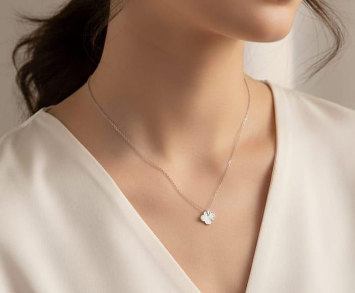 Material: Van Cleef & Arpels necklace in 18k white gold plated stainless steel