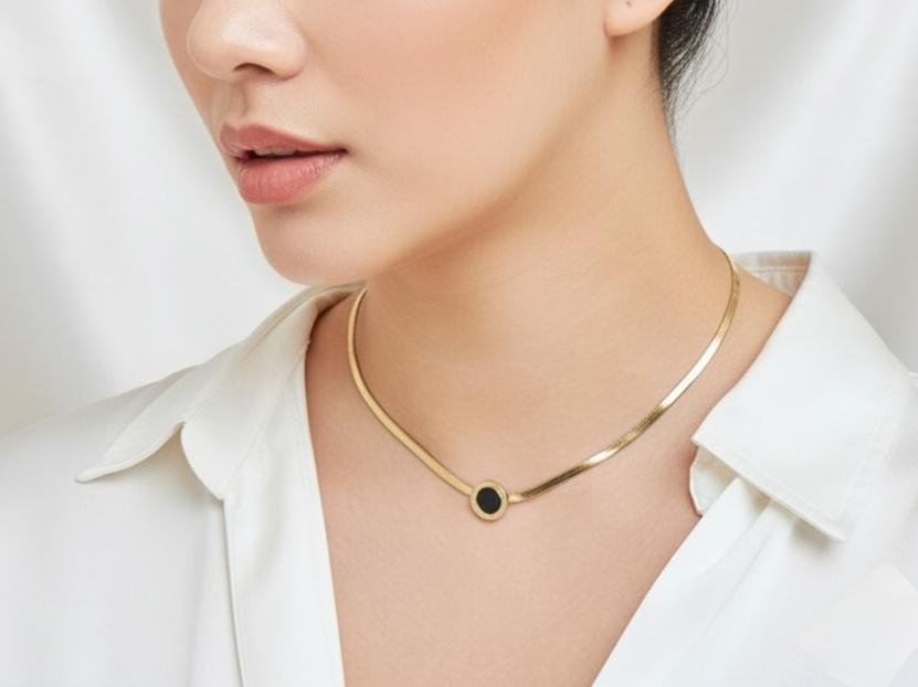 Material: Snake back pendant with Roman numerals, made of 18k gold-plated stainless steel.