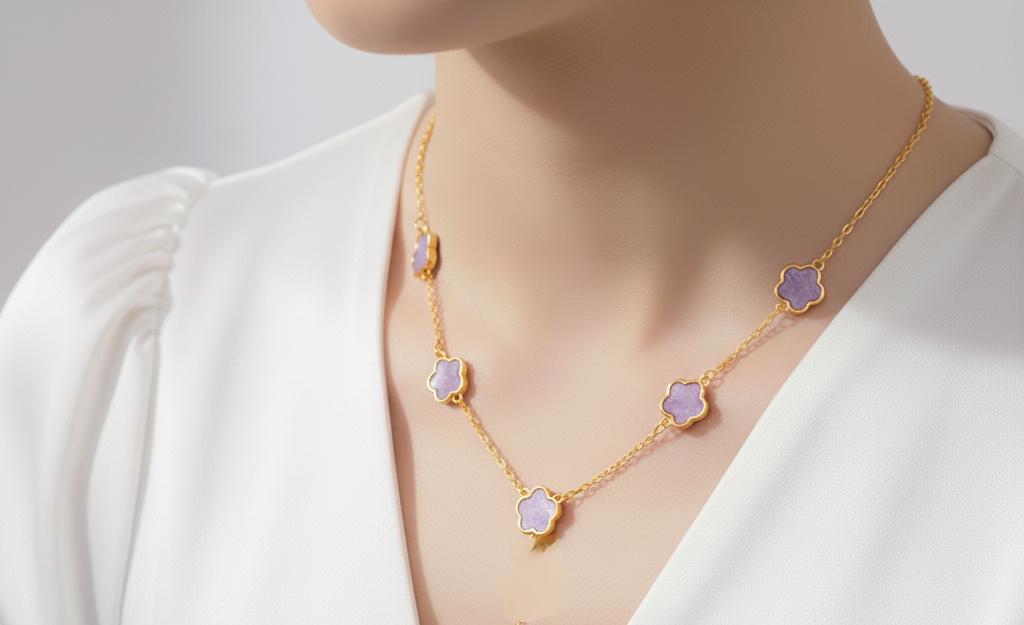 Material: Van Cleef & Arpels necklace in 18k gold-plated titanium stainless steel