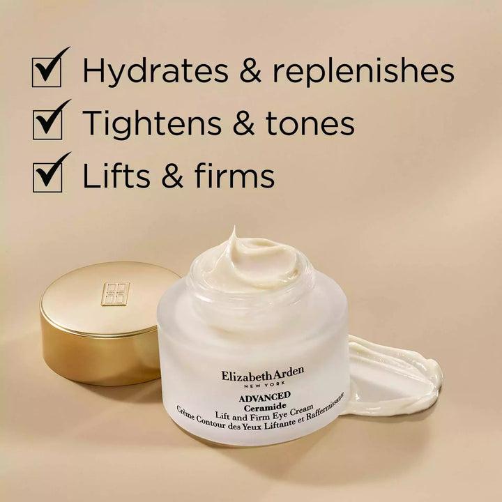 - Advanced Ceramide Lift and Firm Eye Cream intensely hydrates and replenishes the eye area.